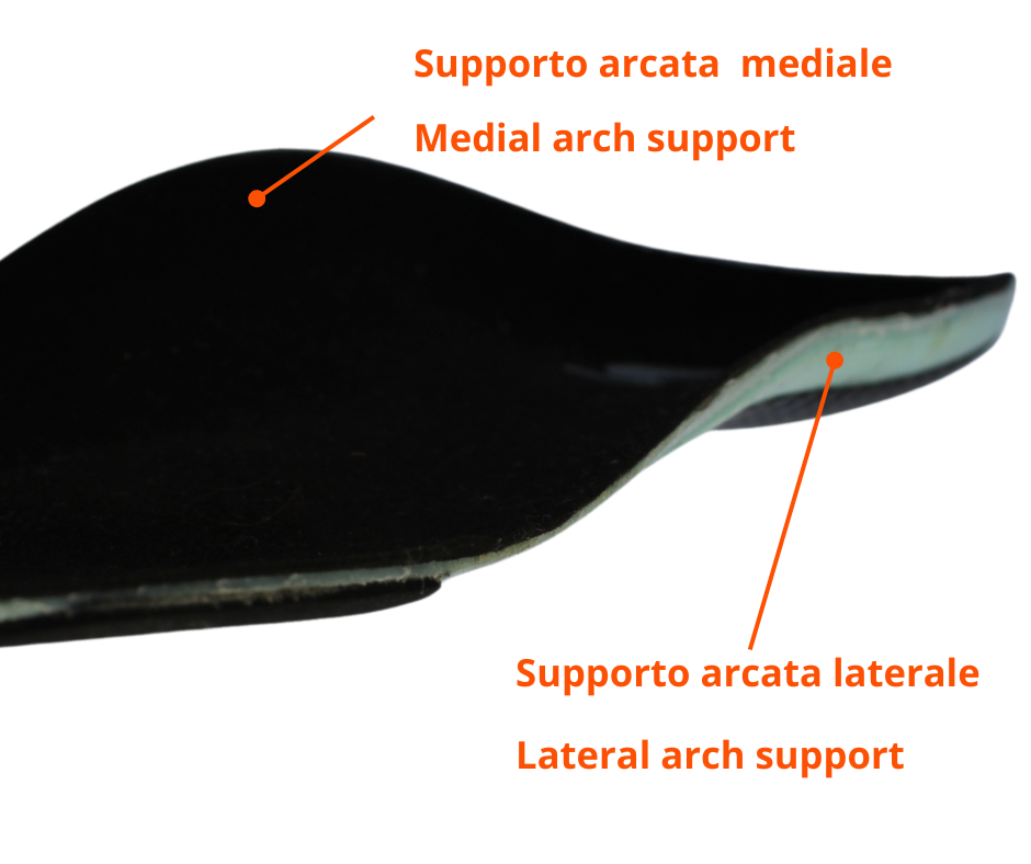 1 ► Solevelò aumenta la superficie di spinta e la distribuzione delle tensioni meccaniche La forma 3D è ergonomica in quanto replica le 3 arcate fisiologiche del piede.